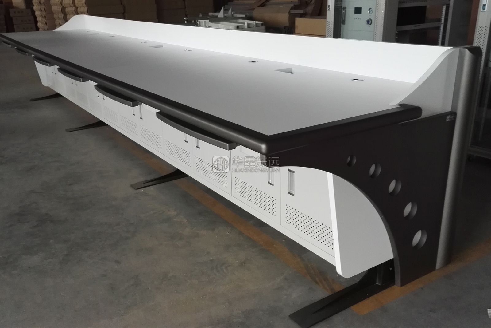 此控制台外观经典简约,扩展性强,功能齐全,搭配多角度模块化的可拼接结构,开放式桌面解决方案,营造绿色办公环境。